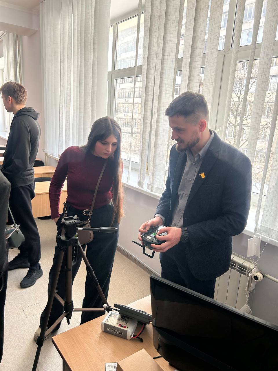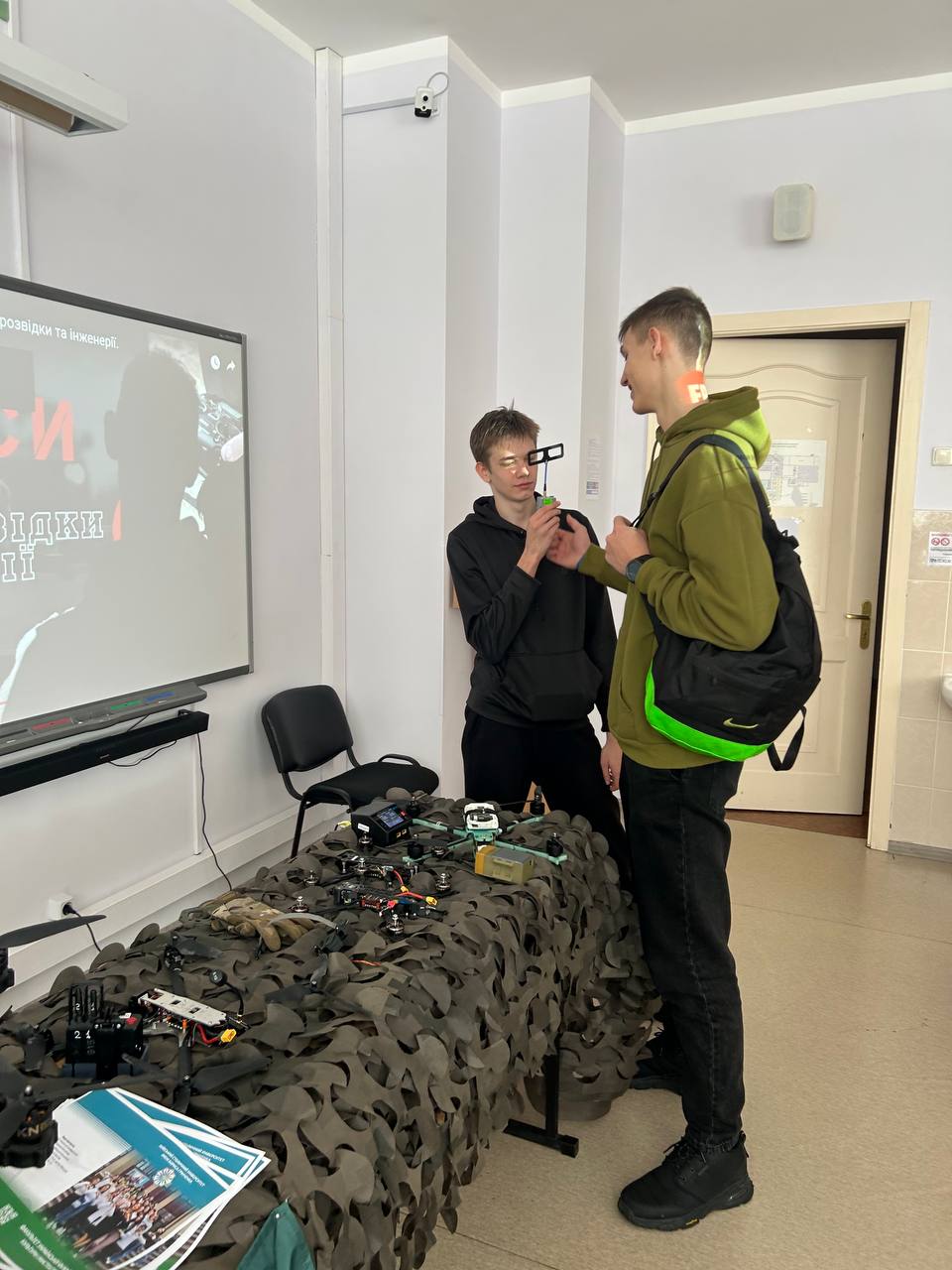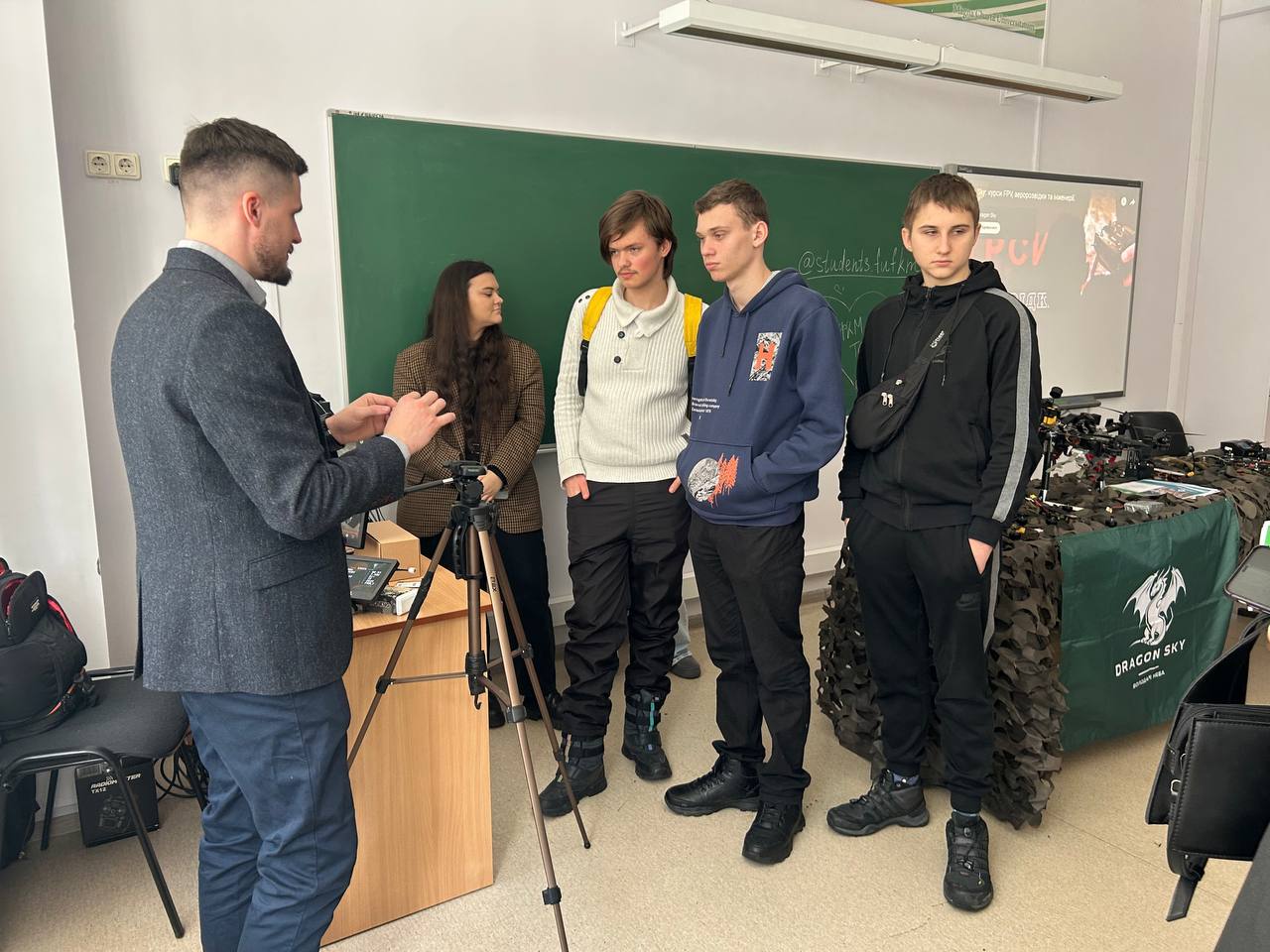 Провів старший викладач кафедри, тренер Спецпідрозділу АРТАН, ГО «Повітряний простір», навчально-дослідницького центру БпЛА «Dragon Sky» Вітковський Д. І. Учасники дізналися про сучасні технології безпілотних літальних апаратів, їх застосування у мирному та воєнному житті. Старшокласники не лише слухали захопливу розповідь, а й мали можливість особисто потримати дрон у руках і спробувати ним керувати.