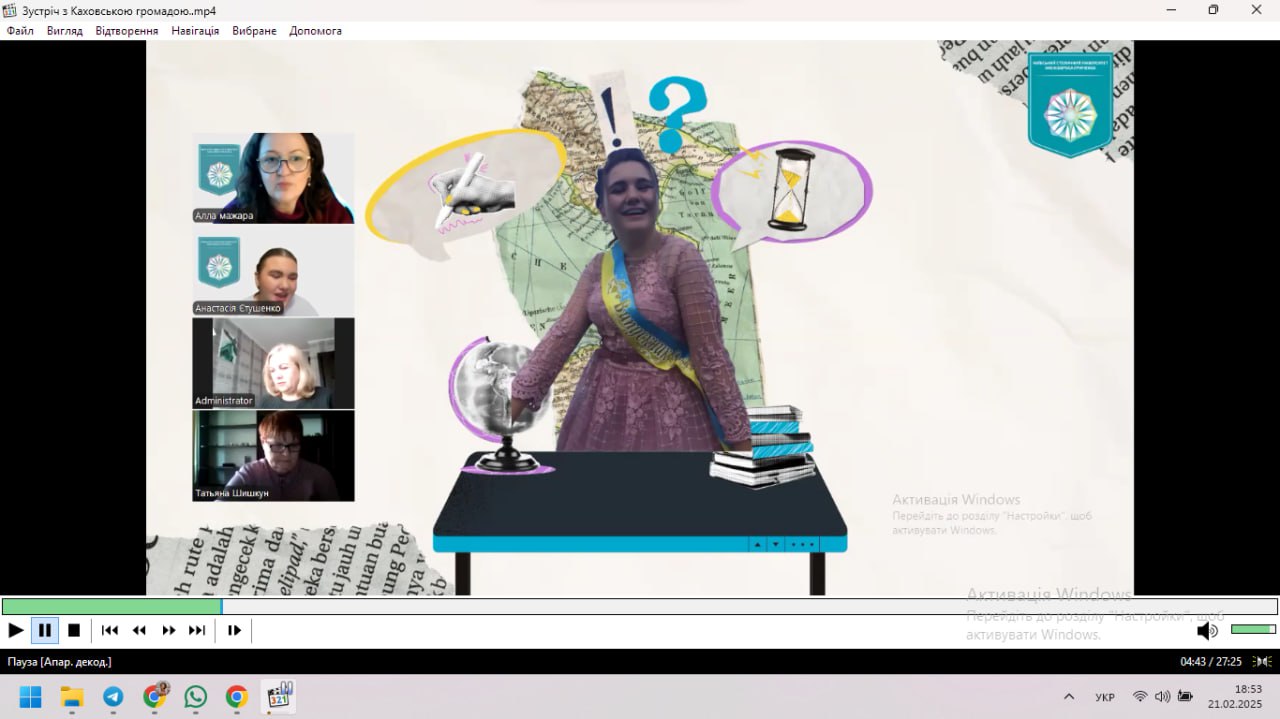 Педагоги доповнюють розповіді важливою інформацією про вступні іспити. Але цього разу зустріч була особливо зворушливою, адже, як було зазначено вище, до нас завітала громада. Ви тільки уявіть собі: вісім шкіл міста Каховки працюють в онлайн-режимі з 2022 року. Вони залишили рідне місто, але школи зберегли. 3500 дітей щодня відвідують онлайн-школу. Викладачі, розкидані по всій Україні, щодня "ходять на роботу" в онлайн та проводять уроки для учнів своїх рідних шкіл. Один з учнів, наприклад, доєднався аж з В'єтнаму!