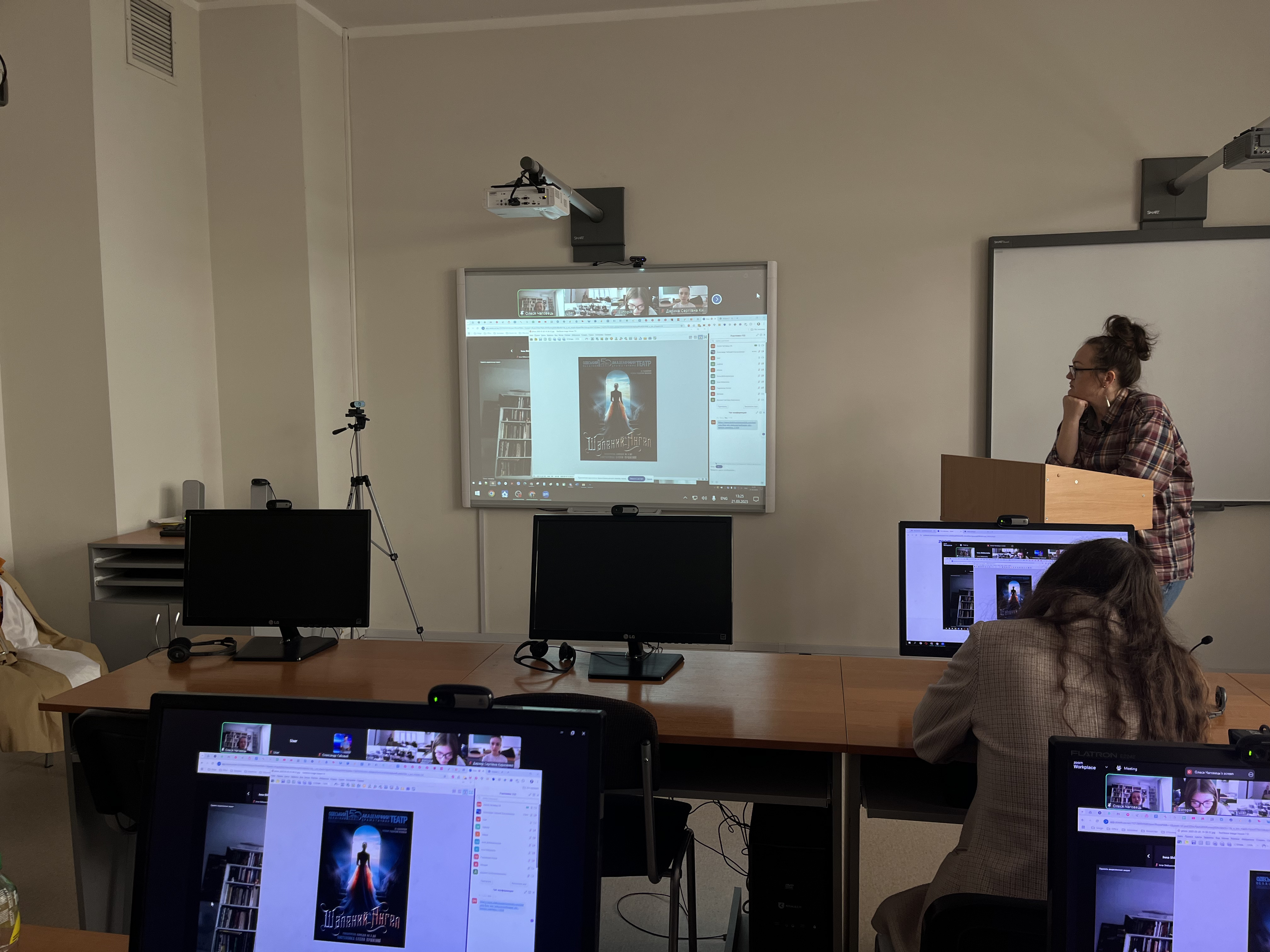 Студенти разом із  гостею  аналізували приклади відомих афіш до концертних заходів, розглядали особливості їх дизайну та намагалися створити власні концепції, спираючись на отримані знання.