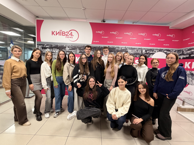 4 листопада 2025 року студенти 1-4 курсів освітньо-професійної програми «Ведучий телевізійних програм» спеціальності «Аудіовізуальне мистецтво та медіавиробництво» відвідали ТРК «Київ 24». Захід відбувся у межах практичних занять з навчальної дисципліни «Сучасні інформаційні програми на телебаченні» під керівництвом викладача кафедри інформаційних комунікацій Маріанни Сергіївни Черкасець.