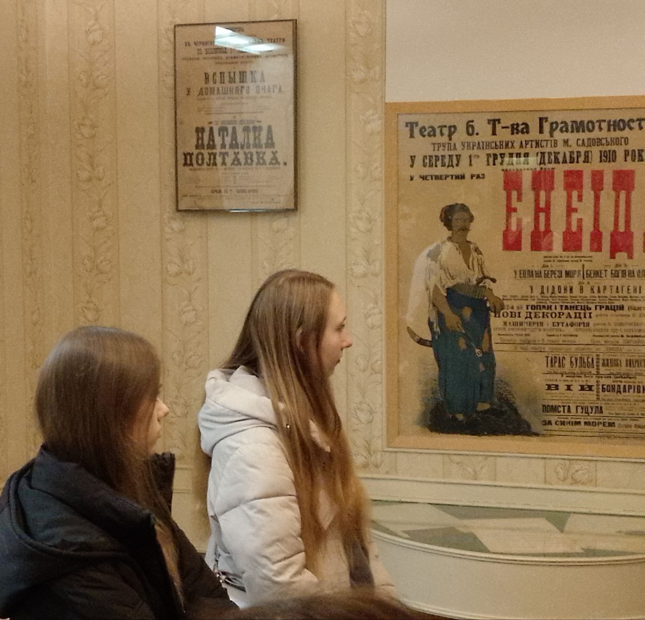 Під час екскурсії студенти ознайомилися з історією українського театру, отримали незабутні враження від цікавої та пізнавальної розповіді, а також мали змогу побачити автентичні маски, фотографії та костюми корифеїв українського театру.