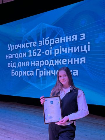 Колектив Факультету української філології, культури і мистецтва щиро вітає Корець Мальвіну Леонідівну, студентку III курсу групи ВТПб-1-23-4.0д спеціальності «Аудіовізуальне мистецтво та виробництво», освітньої програми «Ведучий телевізійних програм», із отриманням іменної стипендії Бориса Грінченка. Ця почесна відзнака є результатом її високих академічних успіхів, активної участі в науково-дослідній діяльності та вагомого внеску в громадське життя Університету.