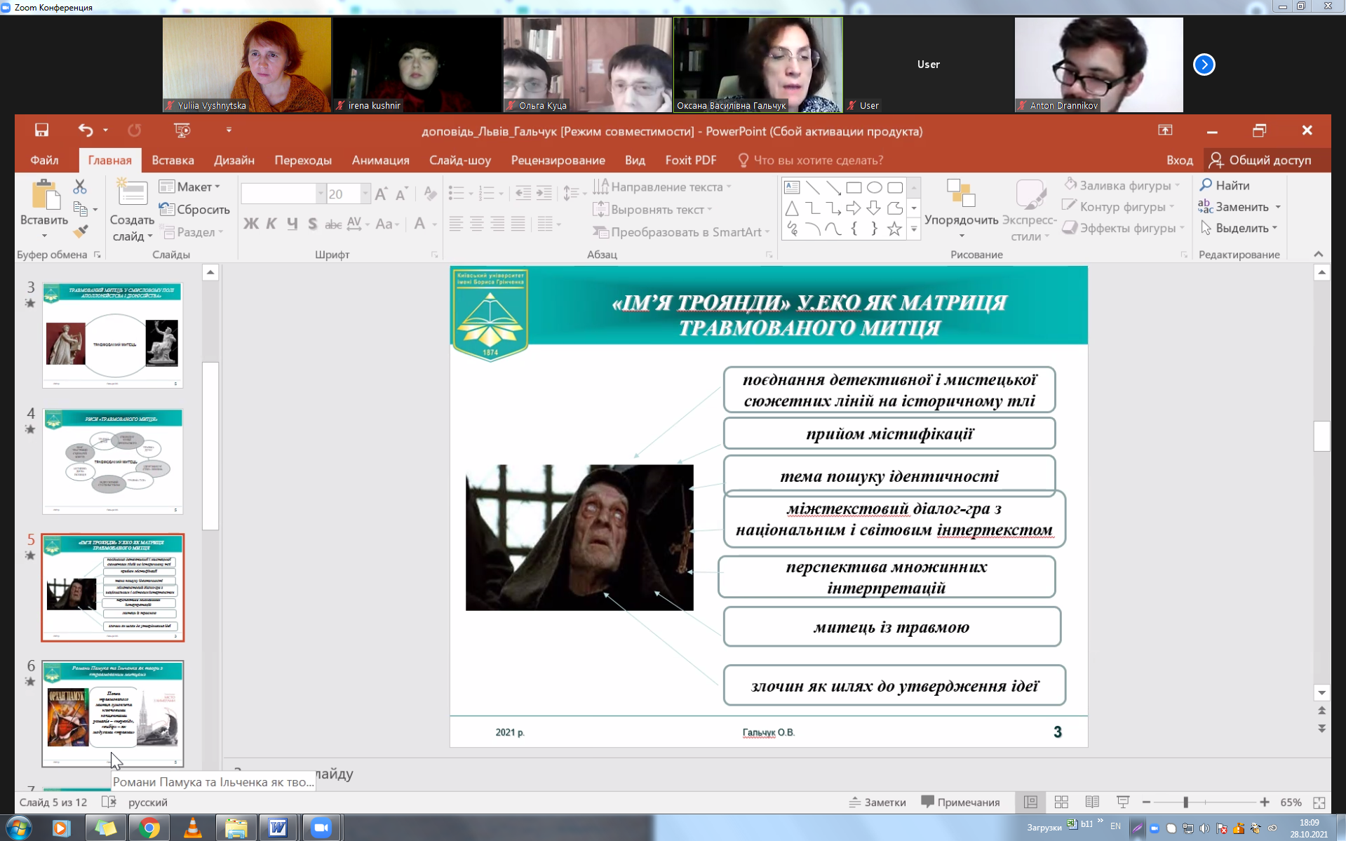 Глибокі й цікаві доповіді відомих науковців Наталії Висоцької («Постколоніальна теорія в літературознавчій американістиці: pro і contra»), Марії Моклиці («Жанрові і метажанрові інтенції алегорії (європейський контекст)»), Лесі Генералюк («Фактор України в інтермедіальних стратегіях Івана Буніна»), Івана Мегели («Бриколаж як метод реконструкції пам’яті (на прикладі роману В. Зебальда «Аустерліц»)) і Любомира Бораковського («Наративні засоби вираження ідентичності в сучасній німецькомовній літературі») на пленарному засіданні визначили коло проблем, які обговорювали учасники наукового зібрання.