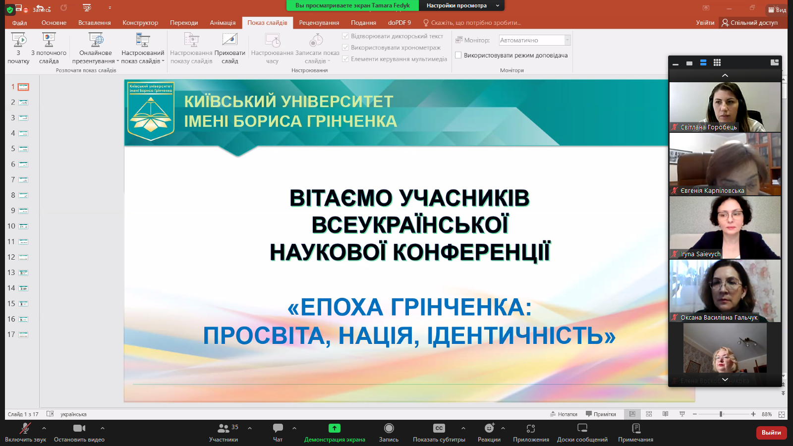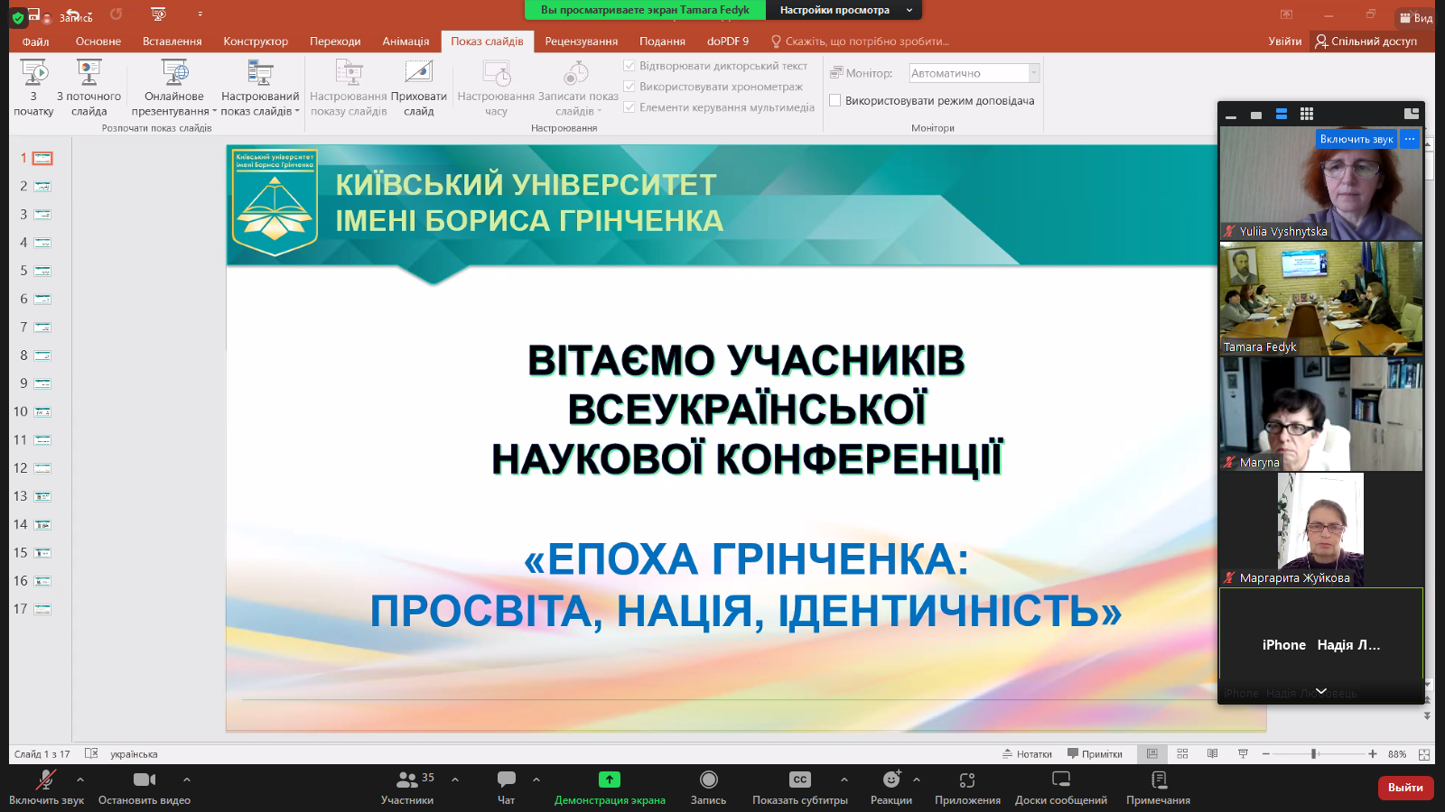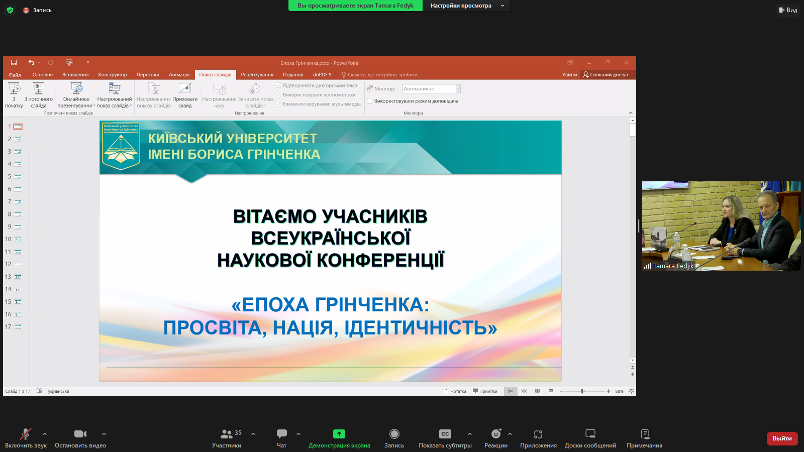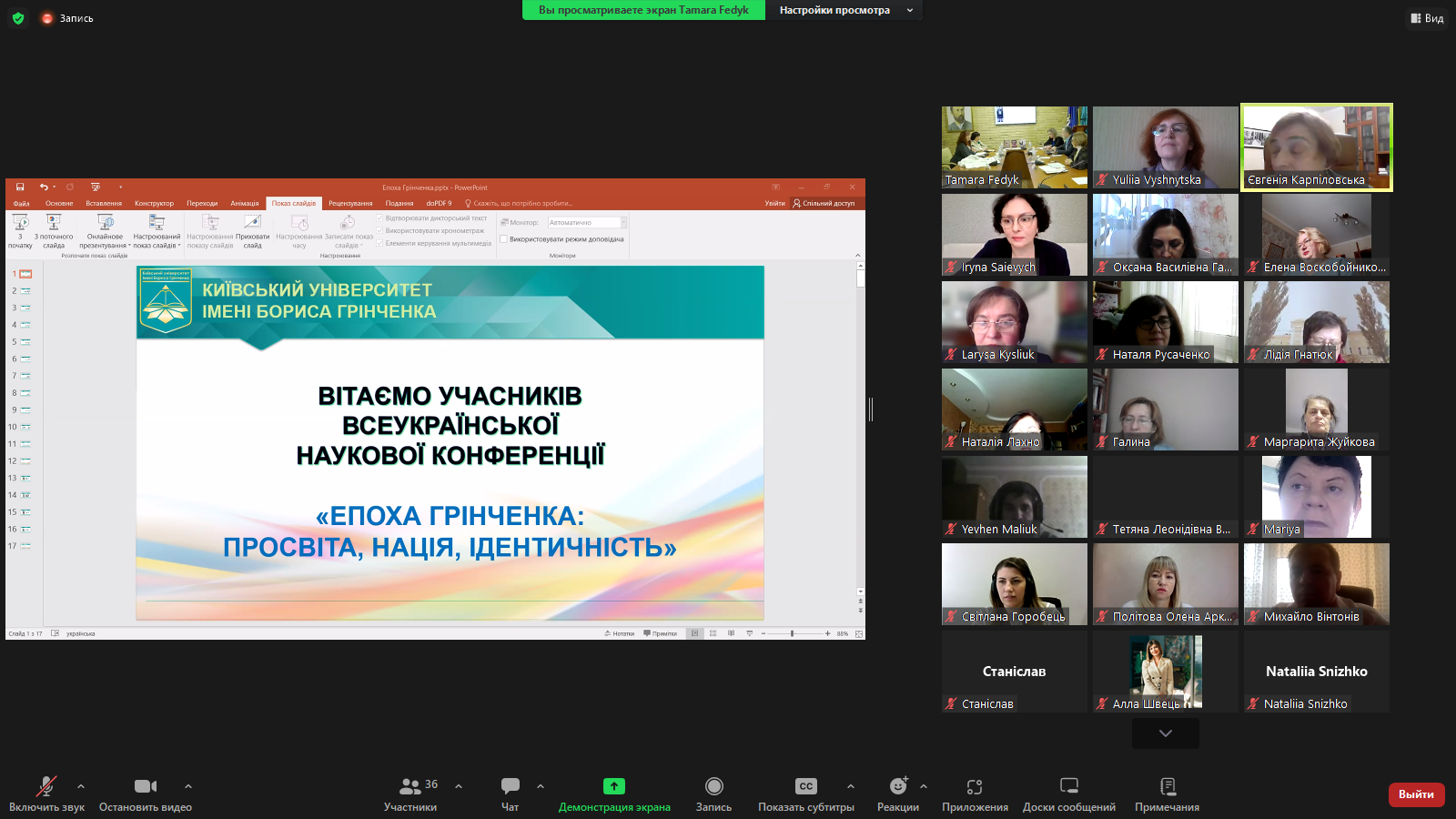 Вхоплені миттєвості виступів науковців можна роздивитися на світлинах-скрінах, а детальніше про загальноуніверситетський захід пропонуємо прочитати на сторінці Факультету української філології, культури і мистецтва Університету Грінченка та на офіційних сторінках у соцмережі "Фейсбук"