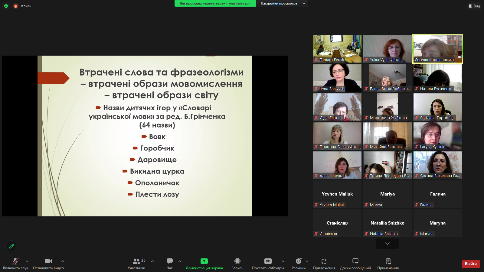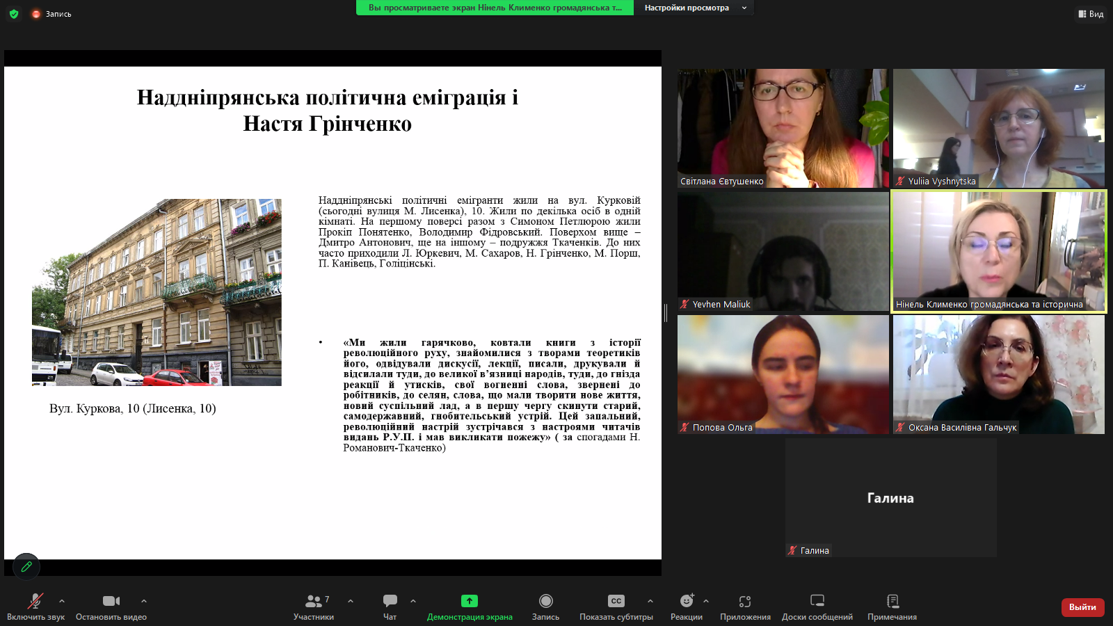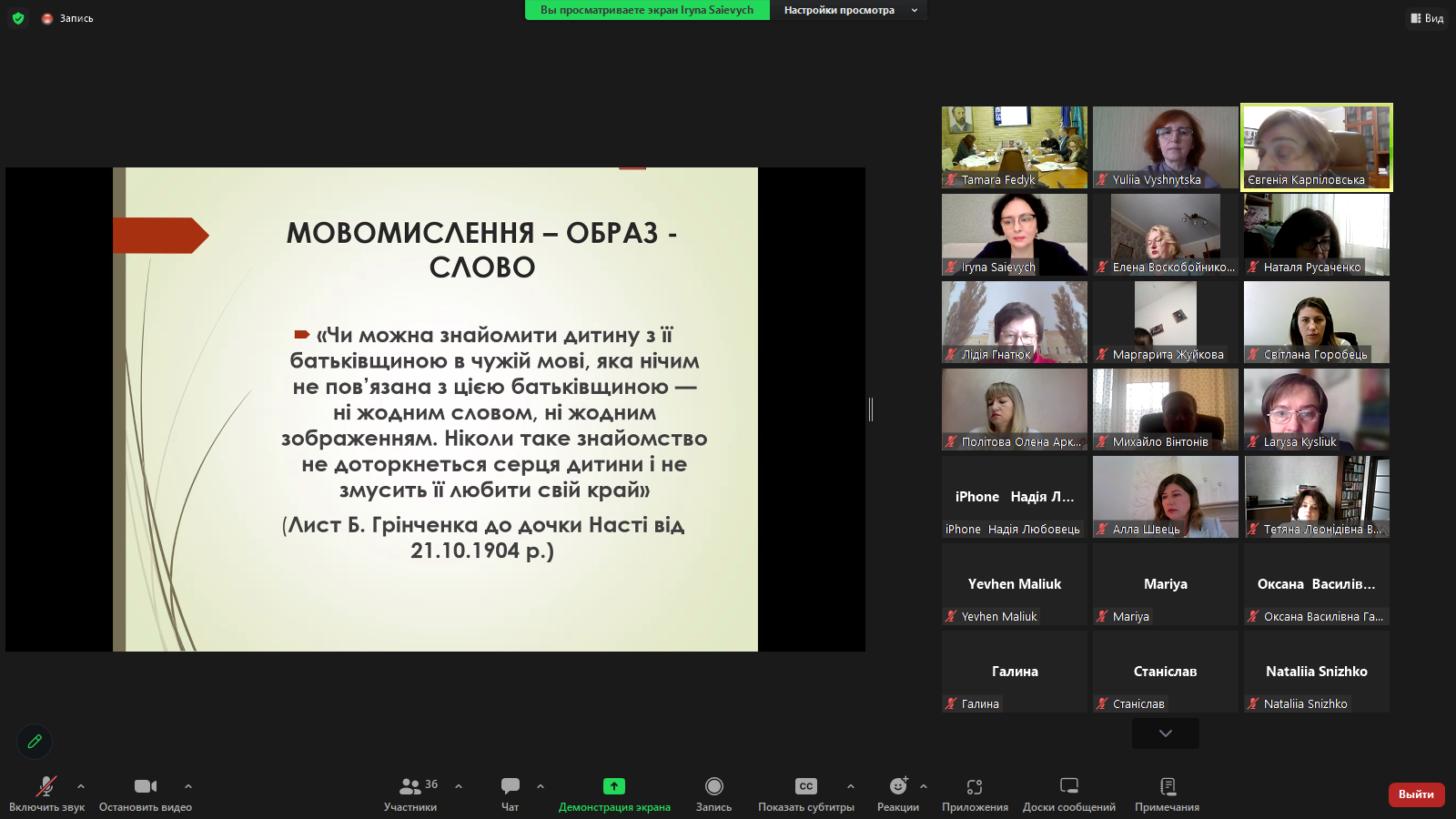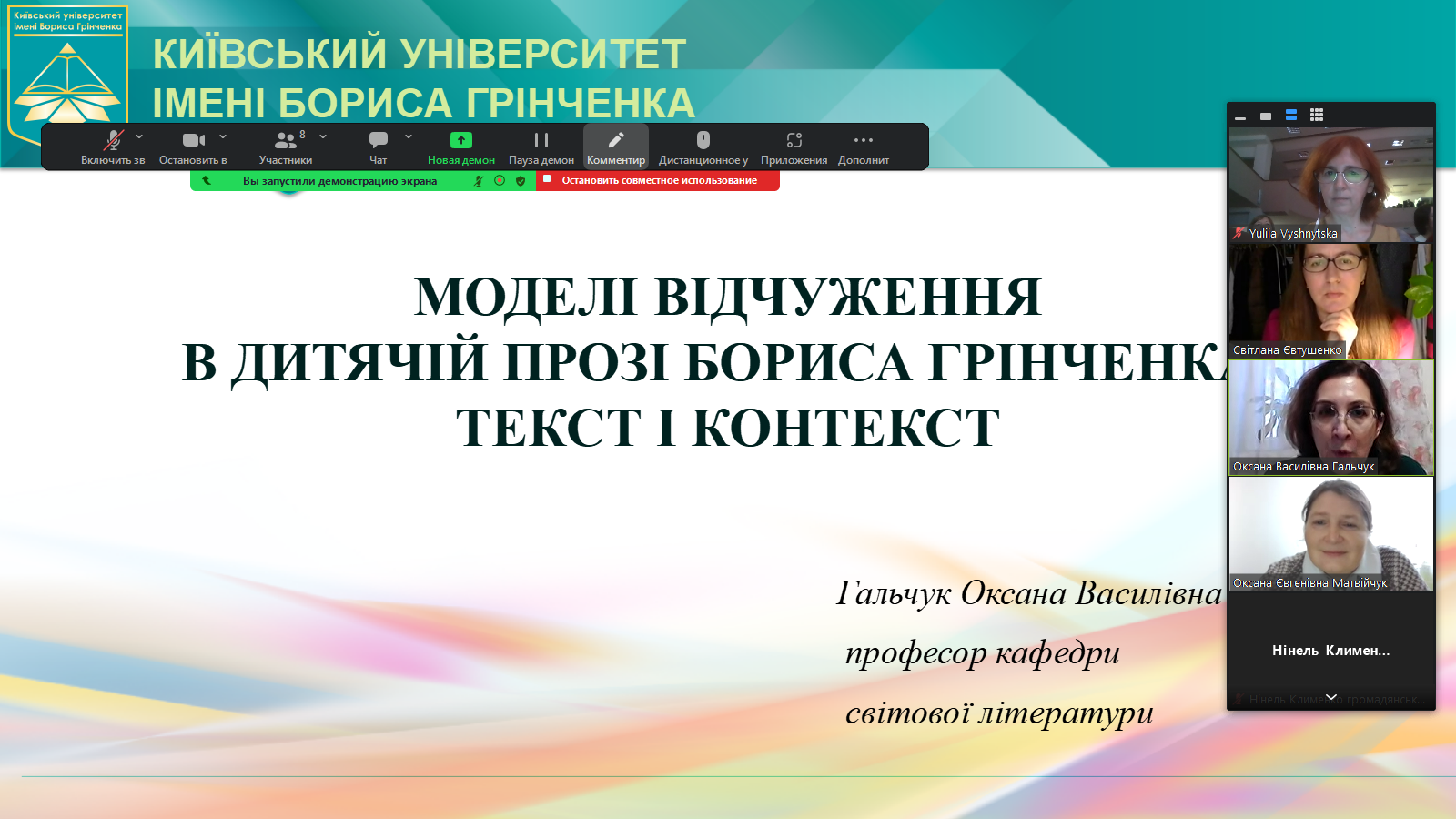 Оксана Гальчук на лінійці "Історія становлення й актуальні питання грінченкознавства. Прижиттєва і подальша рецепція творчості Бориса Грінченка. Націєцентрична педагогіка Бориса Грінченка" презентувала результати дослідження моделей відчуження в дитячій прозі Грінченка.