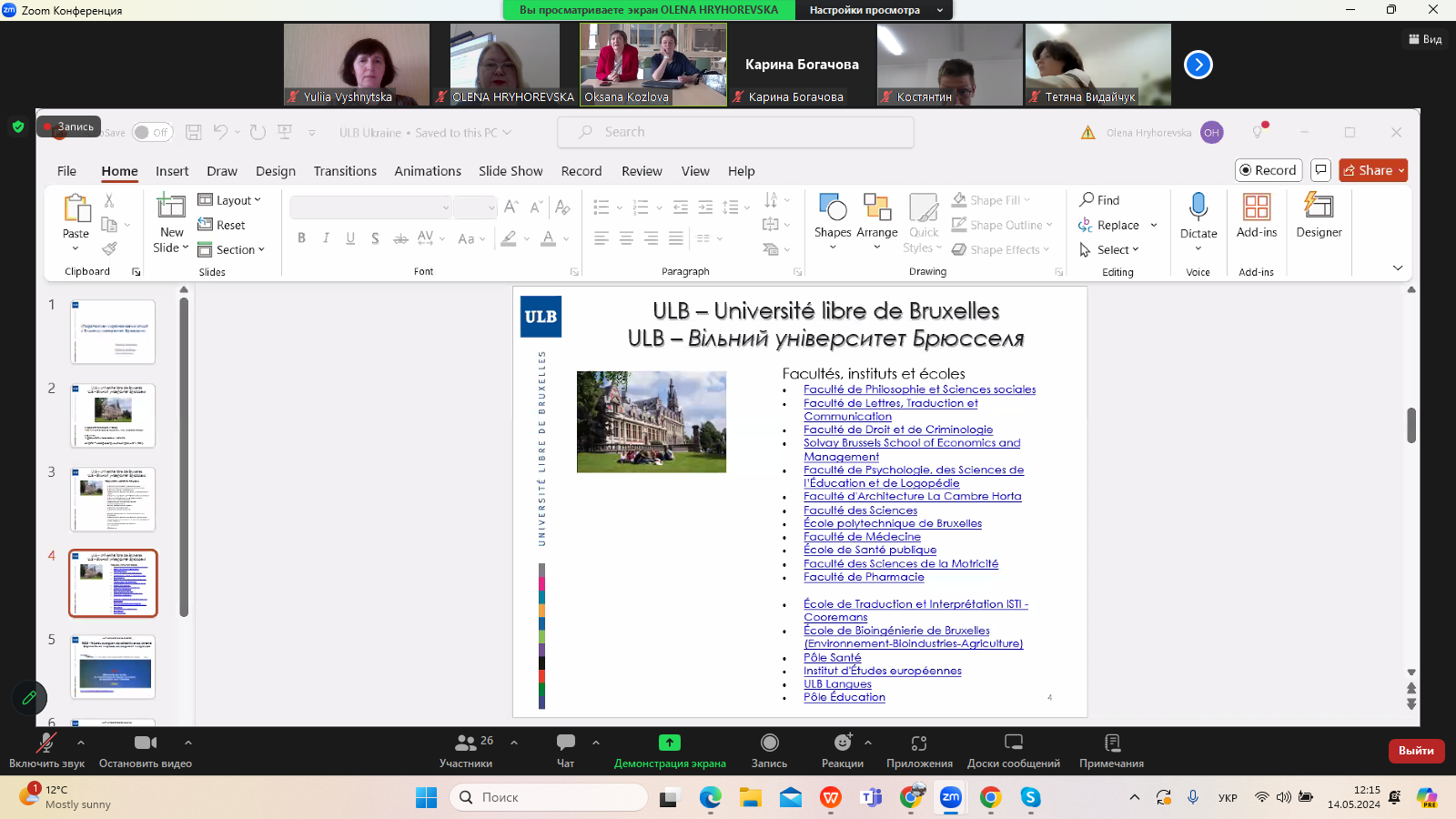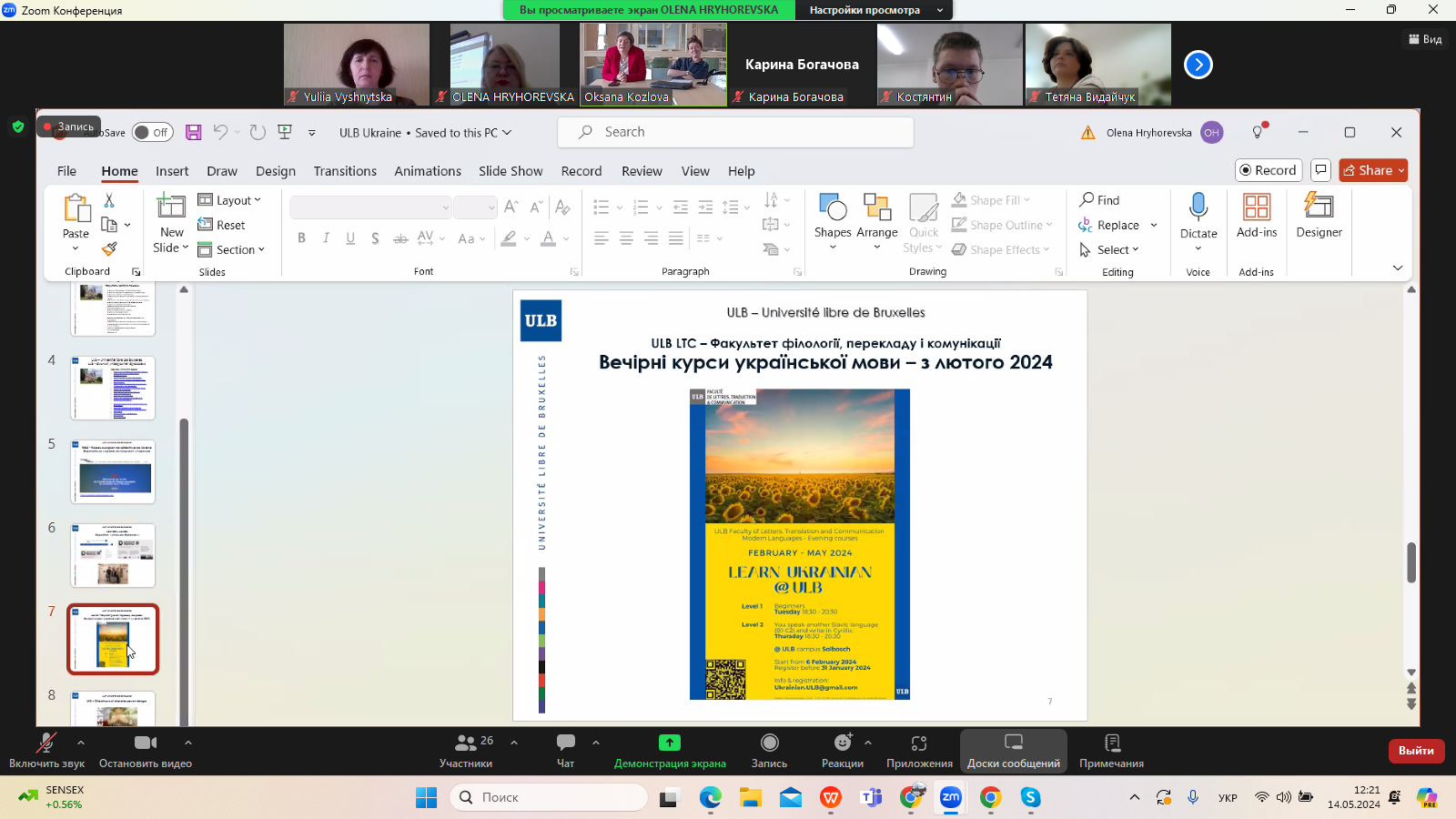 14 травня 2024 р. доцент кафедри світової літератури Юлія Вишницька взяла участь у дискусії «Перспективи українознавчих студій у Вільному університеті Брюсселя», організованій кафедрою інформаційних комунікацій Факультету української філології, культури і мистецтва в межах Фестивалю науки Університету Грінченка. На зустрічі йшлося про перспективні напрями наукової, освітньої та культурно-мистецької співпраці між Бельгією та Україною.Ключові тези такої співпраці озвучили науковці Вільного університету Брюсселя (Королівство Бельгія):