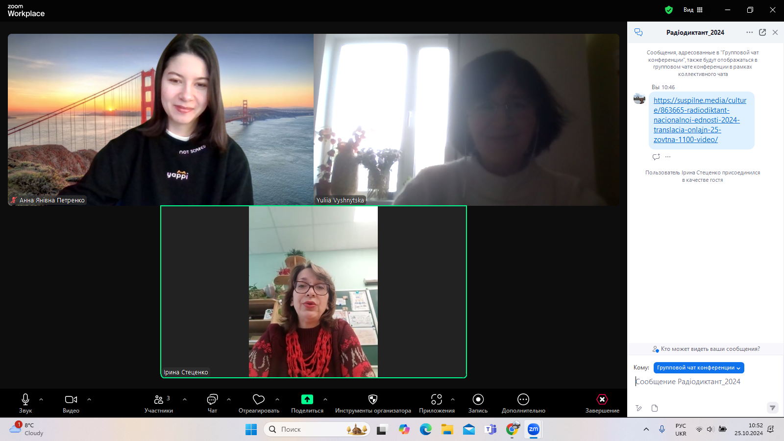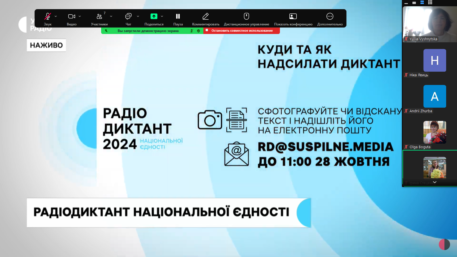 25 жовтня 2024 р. магістранти й випускники освітньої програми "Зарубіжна література та світова художня культура" писали разом з усіма свідомими українцями радіодиктант національної єдності. Прикметно, що в Zoom'і зустрілися, зокрема, магістранти-першокурсники і випускники першого (2020-го р.) магістерського випуску кафедри світової літератури.