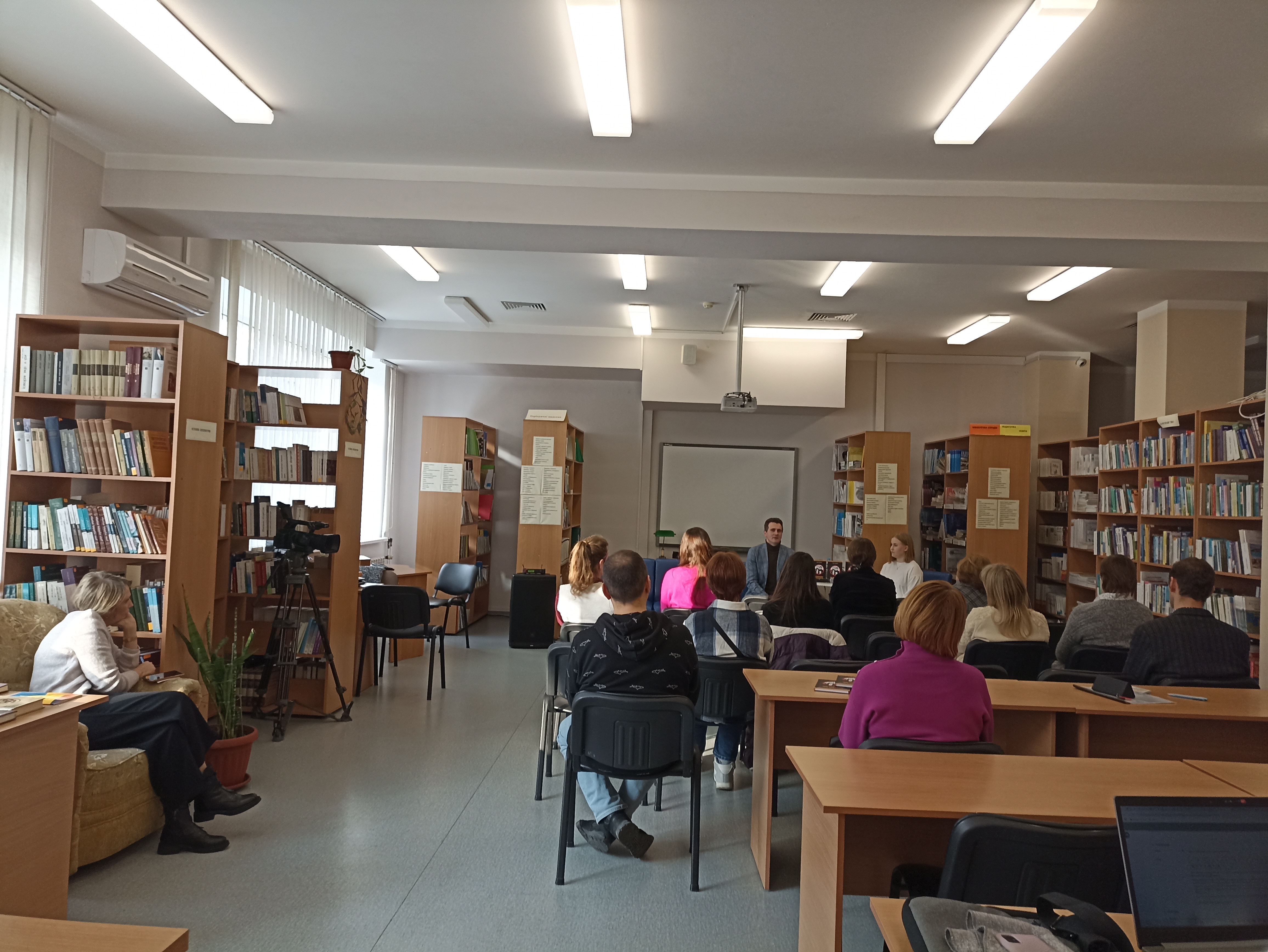 Захід відбувався в читальній залі бібліотеки Університету Грінченка. Модерувала розмову голова студради ФУФКМ, здобувач освіти за спеціальністю ВТП Вікторія Ляшенко. Презентацію книги відвідали