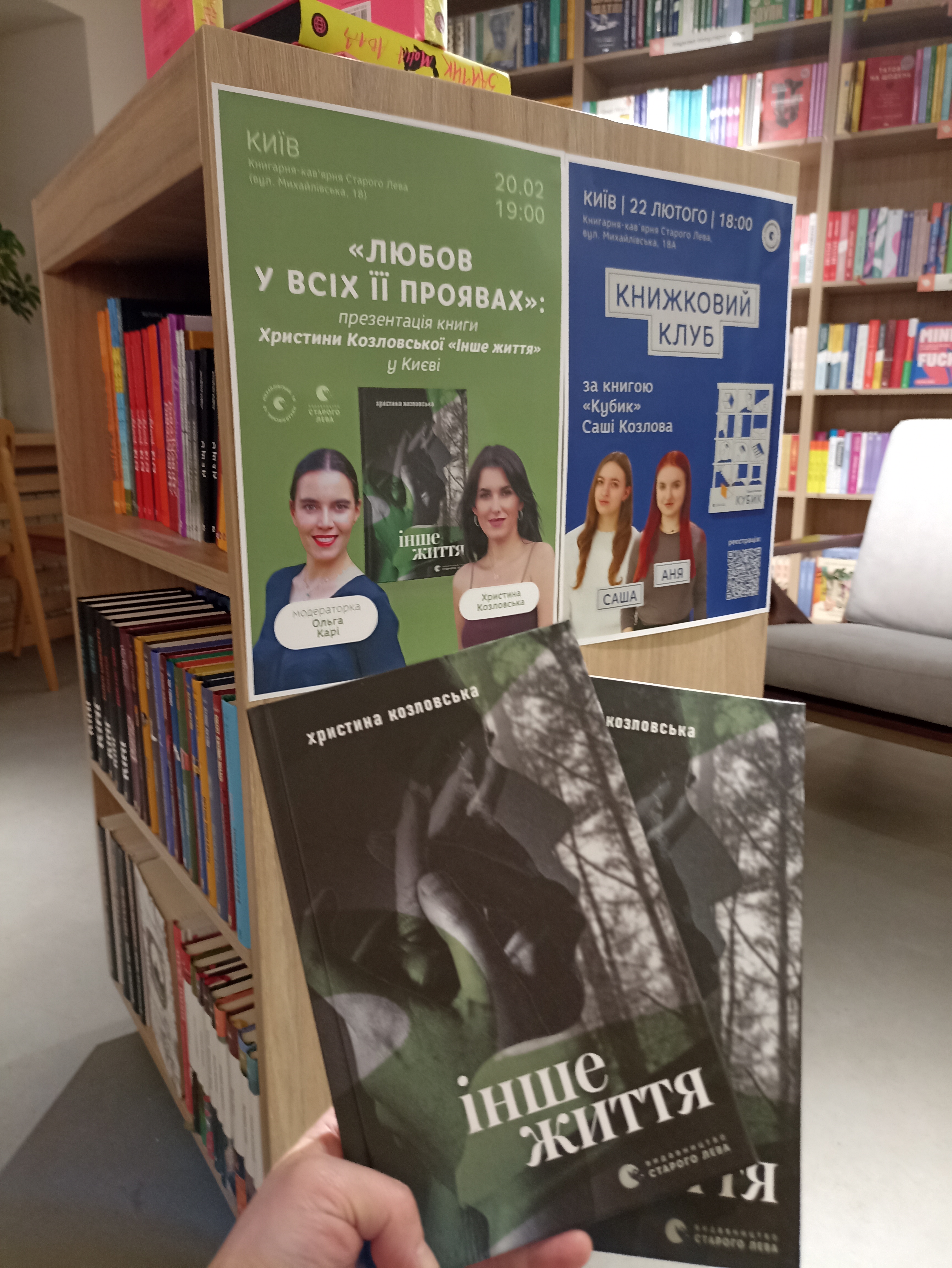 20 лютого 2025 р. в київській книгарні Старого Лева відбулася презентація книжки оповідань Христини Козловської "Інше життя". Столична презентація – перша в серії мандрів книги містами України. Після Києва були Івано-Франківськ, Коломия, Львів. Розмову з письменницею у Львові модерувала Анна Ютченко, у Коломиї – Наталія Мочернюк, у Івано-Франківську – Ольга Деркачова. У Києві фахово, проникливо, цікаво модерувала зустріч з Христиною Козловською письменниця Ольга Карі, збірка есеїв якої нещодавно побачила світ у цьому самому видавництві ("Твоє, моє, нічиє та інше").Христина Козловська – свіжий, унікальний голос новітньої української літератури, який варто вивчати. Зокрема наукової рецепції потребують жанрово-стилістичні ознаки її творів. Наративна структура, синтаксичний малюнок, візуально-тактильна тканина текстів – ось кілька ідіостильових фокусів, у яких голос Христини Козловської звучить дуже виразно й переконливо.