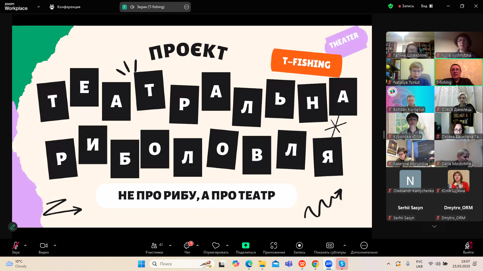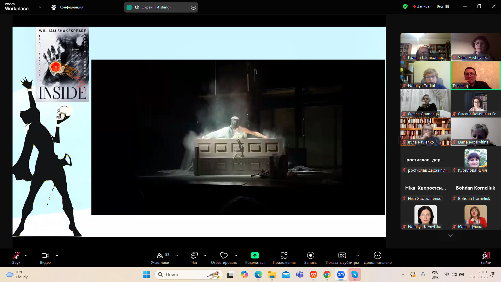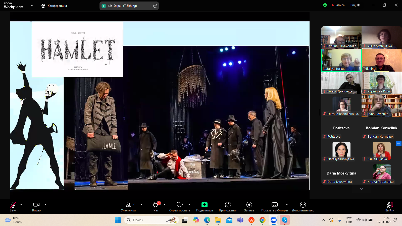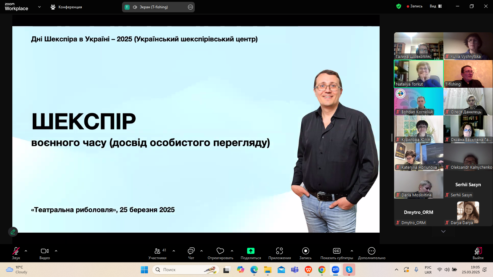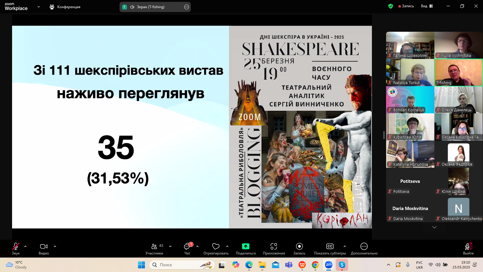 25 березня 2025 року в межах щорічного проєкту "Дні Шекспіра в Україні", який з 2018 року організовує Український шекспірівський центр (керівниця - професор Наталія Торкут), відбулася зустріч з театральним аналітиком Сергієм Винниченком. Засновник проєкту "Театральна риболовля" поділився з учасниками заходу особистісною рецепцією театральних постановок Шекспіра на українській сцені 2014-2025 років. Важливим був критичний погляд на сучасні вистави, що розривають усталені рамки сценографії, епатажують, провокують і спонукають до переосмислення класики, якими є, зокрема, твори Вільяма Шекспіра.
