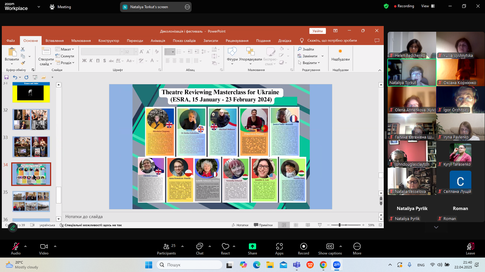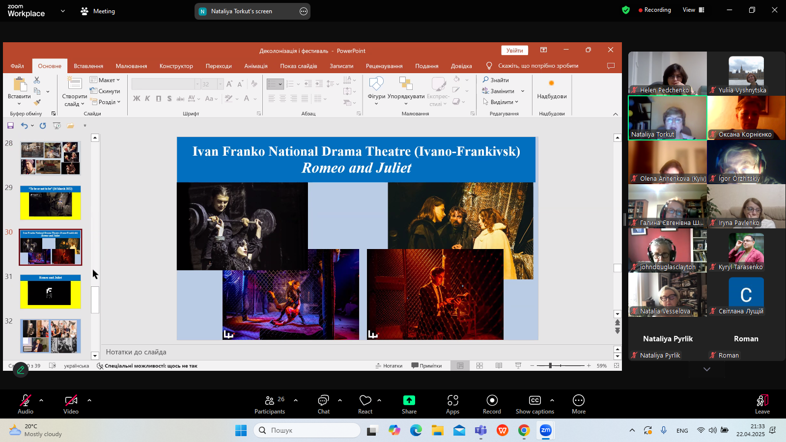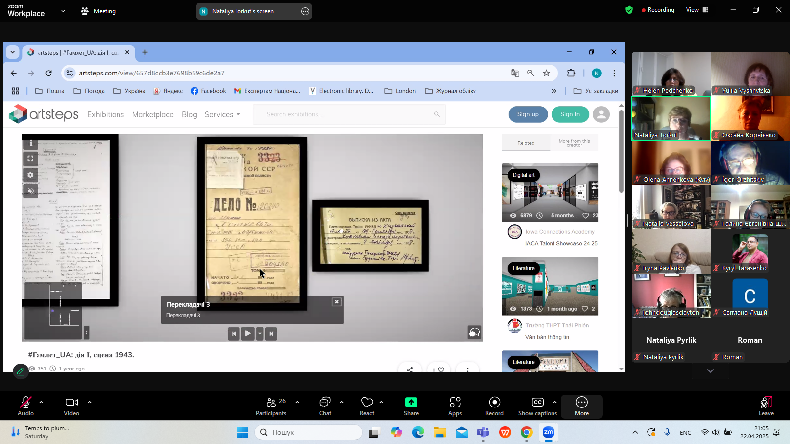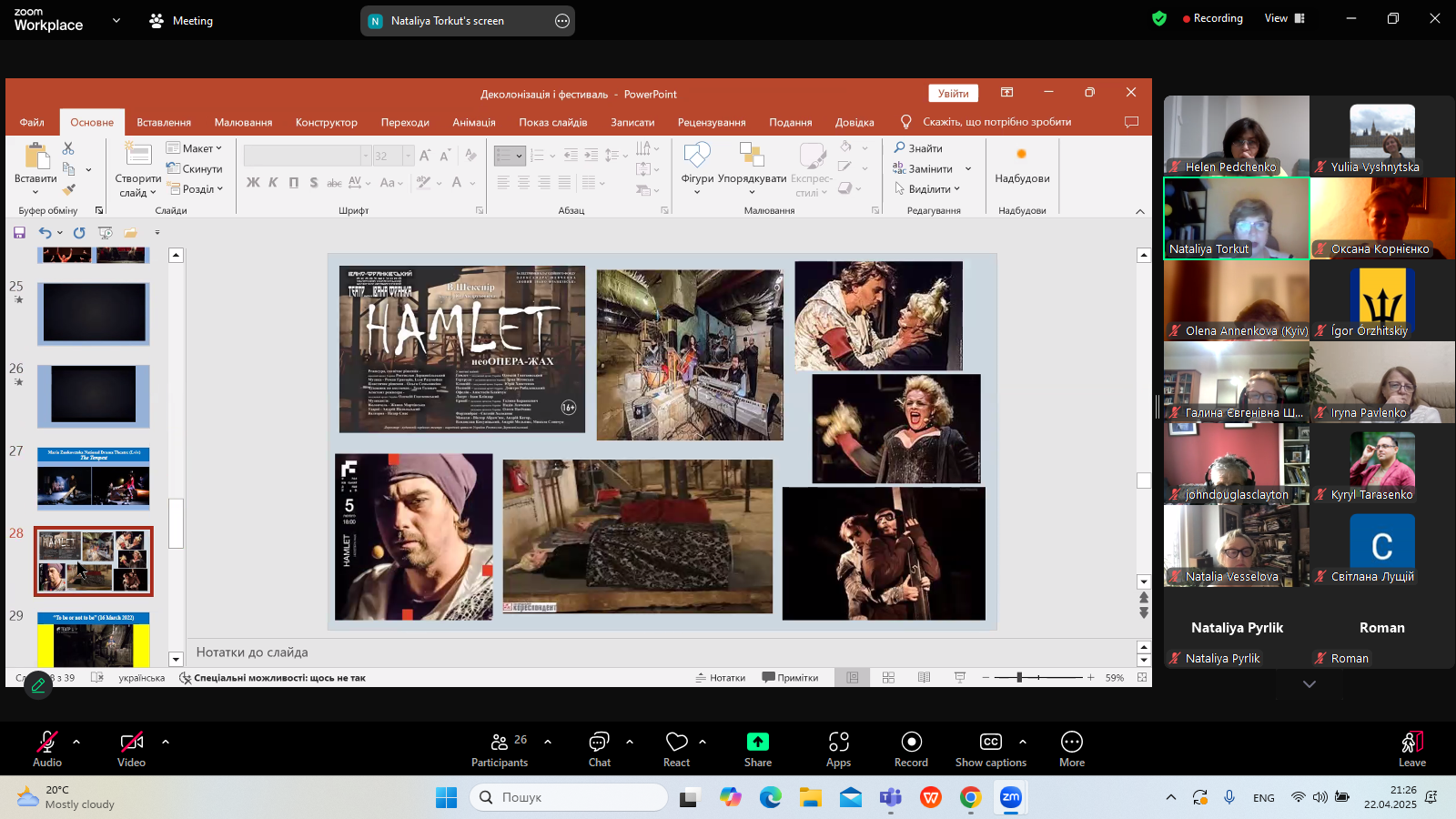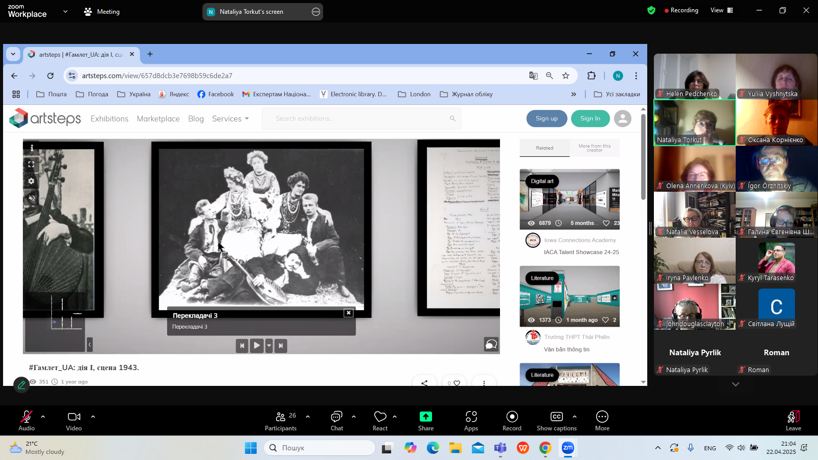 22 квітня 2025 р. всі охочі - залюблені в Шекспіра і ті, хто лише відкриває для себе Великого Барда - мали змогу відвідати онлайн-лекцію доктора філологічних наук, професора Запорізького національного університету, засновниці й очільниці Українського шекспірівського центру, академіка Академії наук вищої школи України, членкині Європейської асоціації шекспірознавців (ESRA), професора Наталії Торкут.