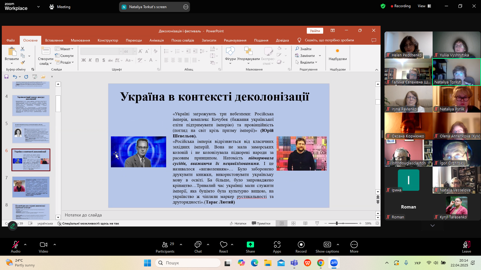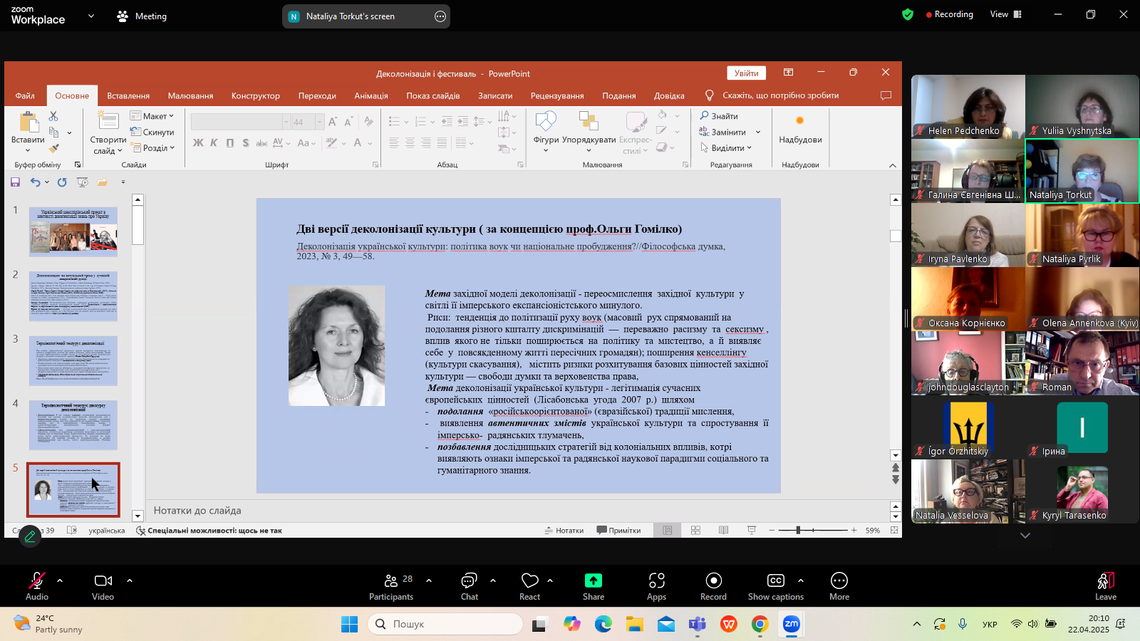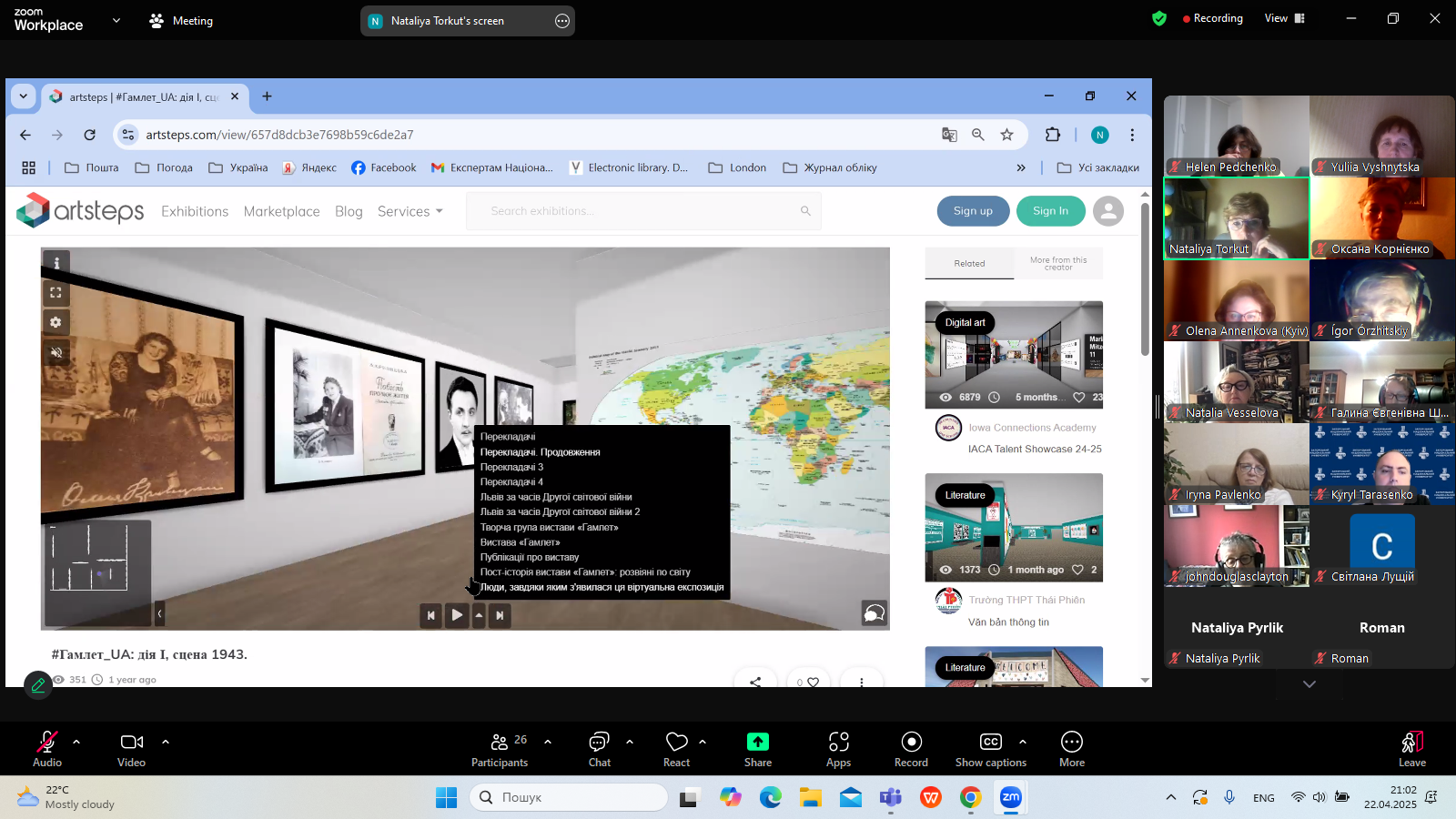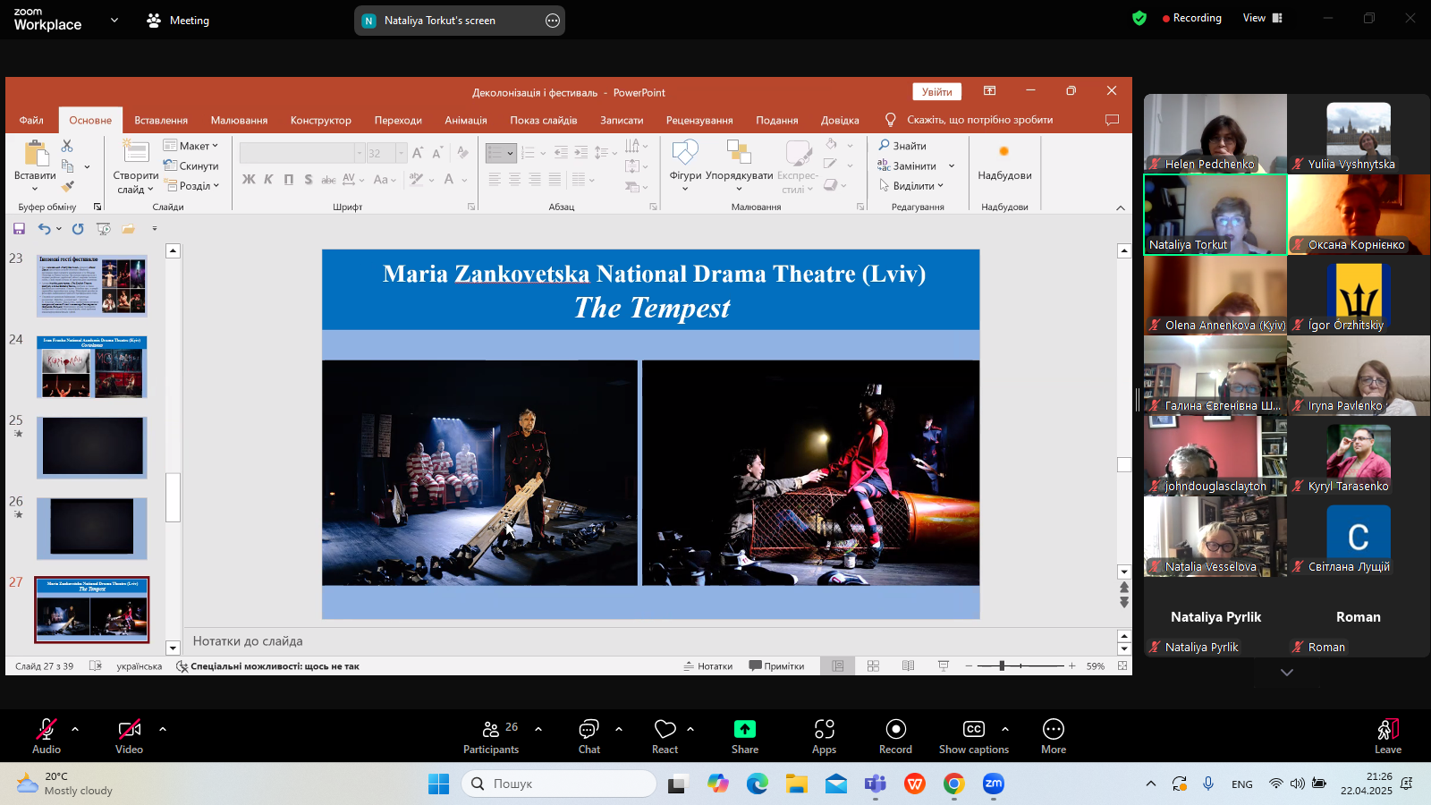 22 квітня 2025 р. всі охочі - залюблені в Шекспіра і ті, хто лише відкриває для себе Великого Барда - мали змогу відвідати онлайн-лекцію доктора філологічних наук, професора Запорізького національного університету, засновниці й очільниці Українського шекспірівського центру, академіка Академії наук вищої школи України, членкині Європейської асоціації шекспірознавців (ESRA), професора Наталії Торкут.