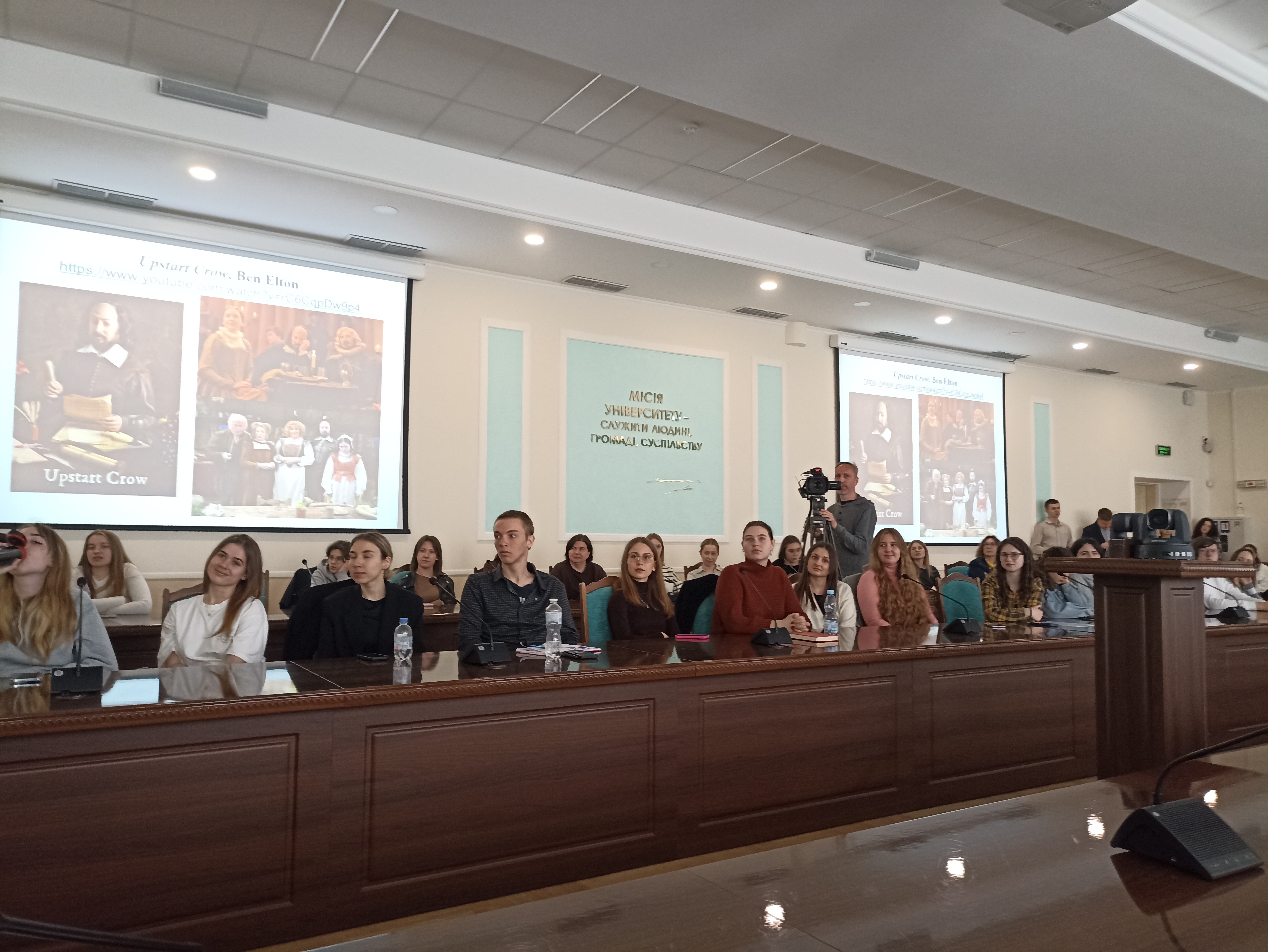 On Tuesday, May 6, I attended a lecture by the professor David Livingstone, and it was a very interesting experience for me. The professor immersed us in the world of Shakespeare and his works. It was fascinating to learn about the various adaptations of his plays. I was pleasantly impressed by the enthusiasm with which the professor spoke, and that enthusiasm was contagious, I couldn’t shift my attention to anything else throughout the entire lecture. I believe such lectures are important because they can spark interest in topics that one may not have paid much attention to before, such as Shakespeare’s creative legacy.