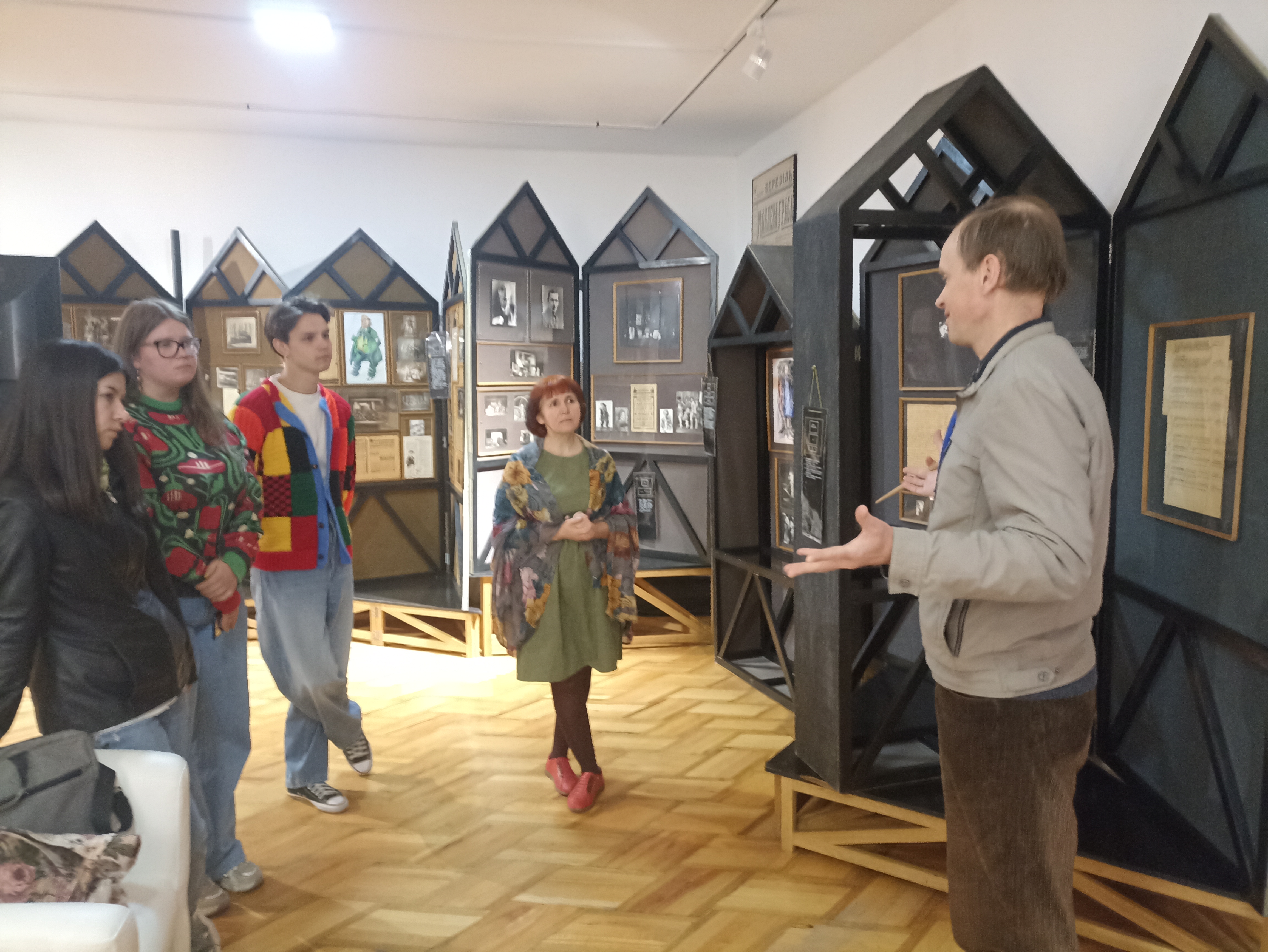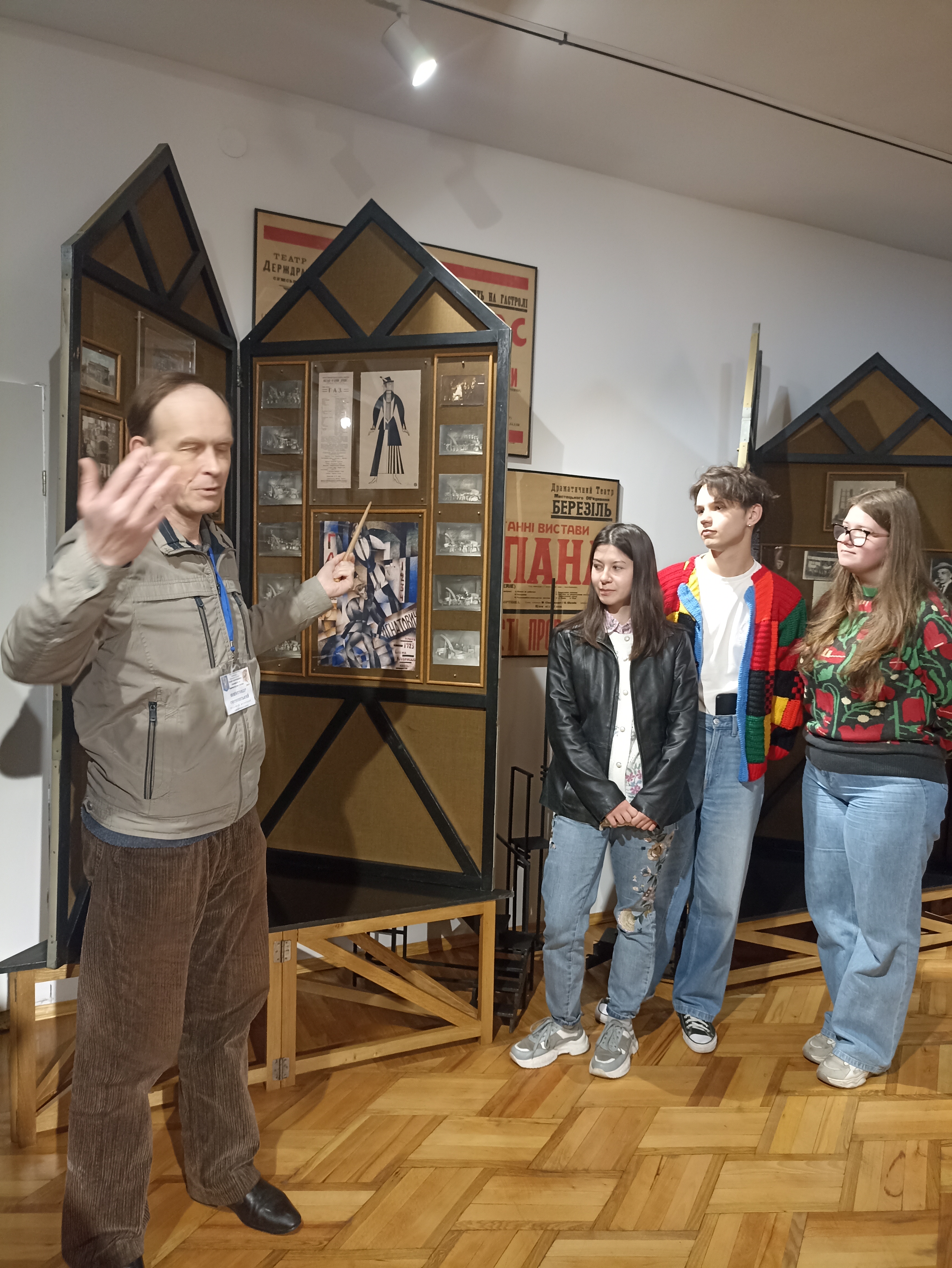 08 травня 2025 р. магістранти групи ЗЛм12414д Олена Куц, Олександр Кобилинський, Анна Петренко разом з доцентом кафедри світової літератури Юлією Вишницькою відвідали Музей театрального, музичного та кіномистецтва України, розташований на території Києво-Печерської лаври.