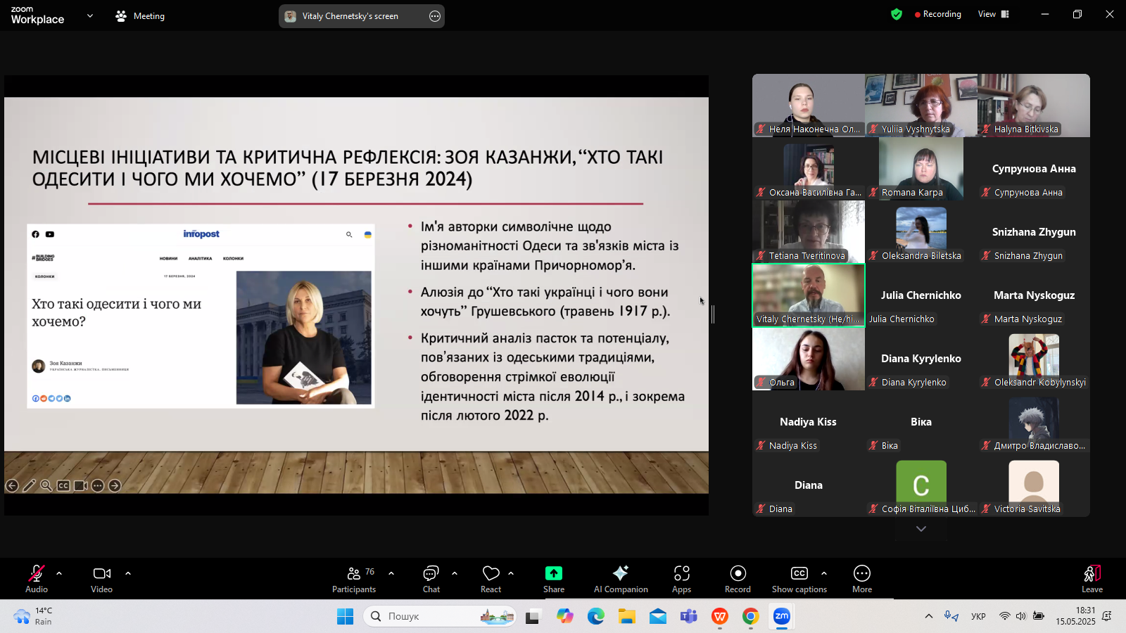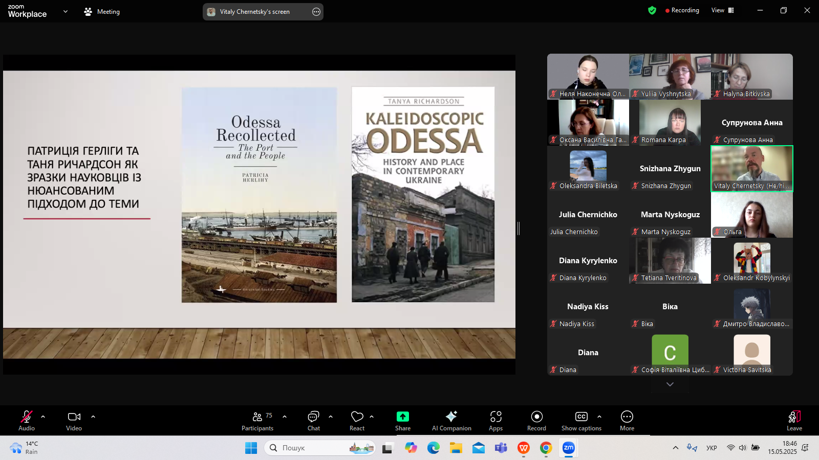 З нагоди Фестивалю Науки-2025 Університету Грінченка кафедра світової літератури організувала 15 травня 2025 р. лекцію професора Віталія Чернецького (Університет Канзасу, США) – літературознавця, перекладача, президента Наукового товариства імені Тараса Шевченка в США. Тема лекції: «Переосмислення міського міфу Одеси: українські чорноморські наративи, різноспрямована пам’ять та виклики деколонізації».
