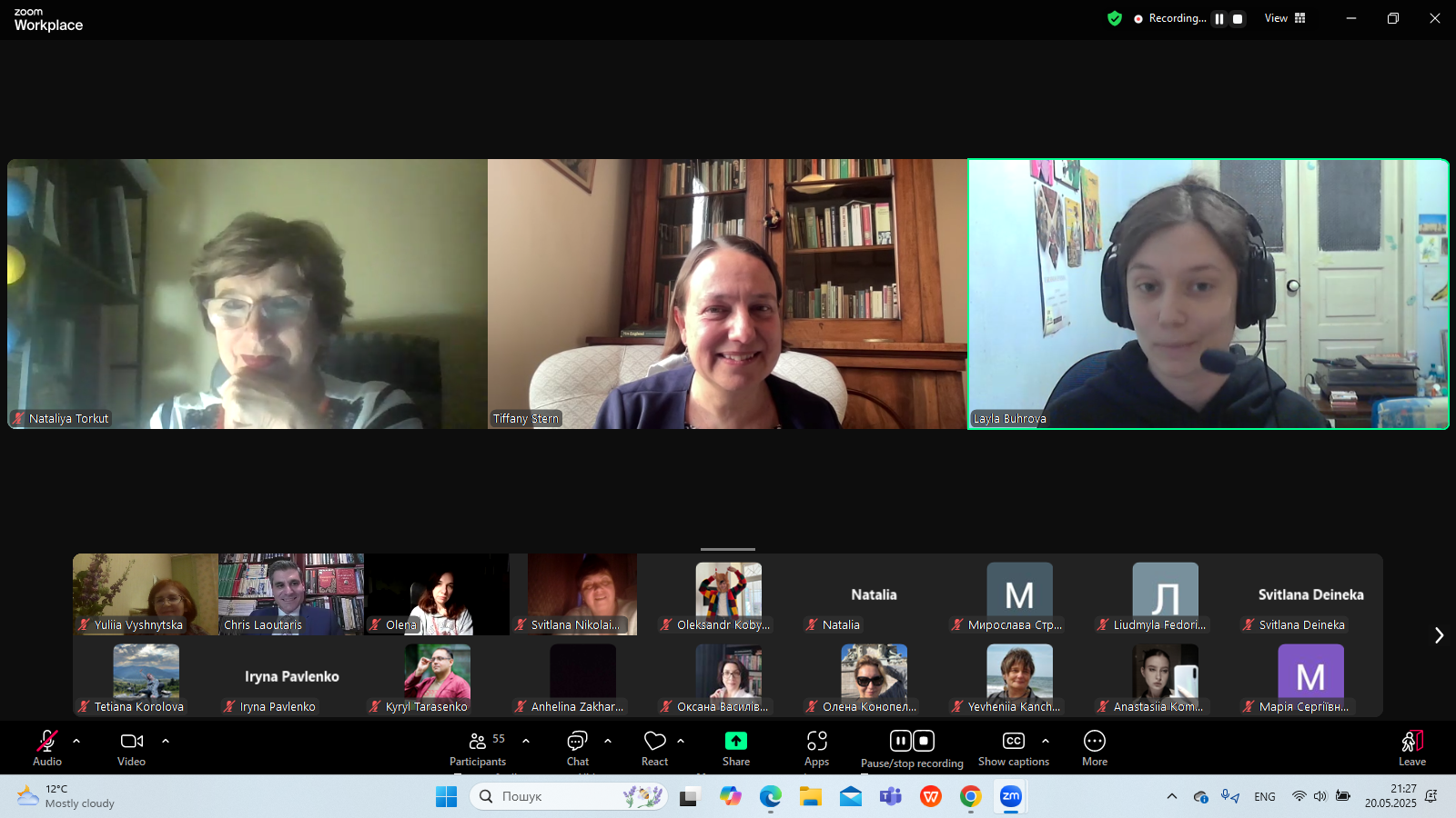 В Zoom-залі перебували й грінченківці: другокурсники романо-германської філології, магістрант освітньої програми "Зарубіжна література та світова художня культура" Олександр Кобилинський, викладачі кафедри світової літератури професор Оксана Гальчук та доцент Юлія Вишницька.