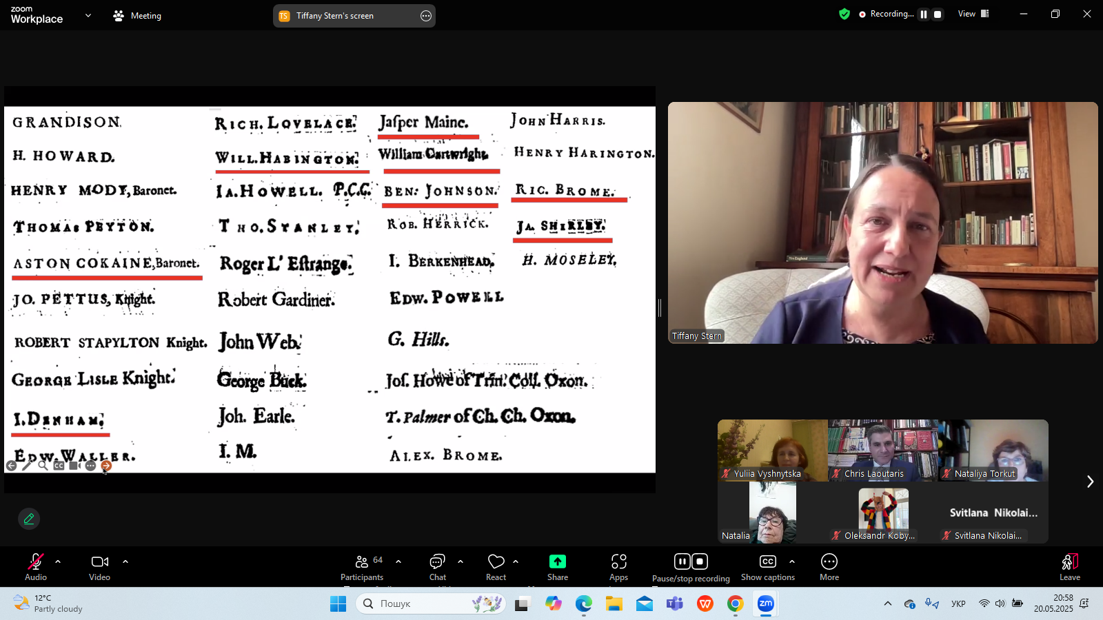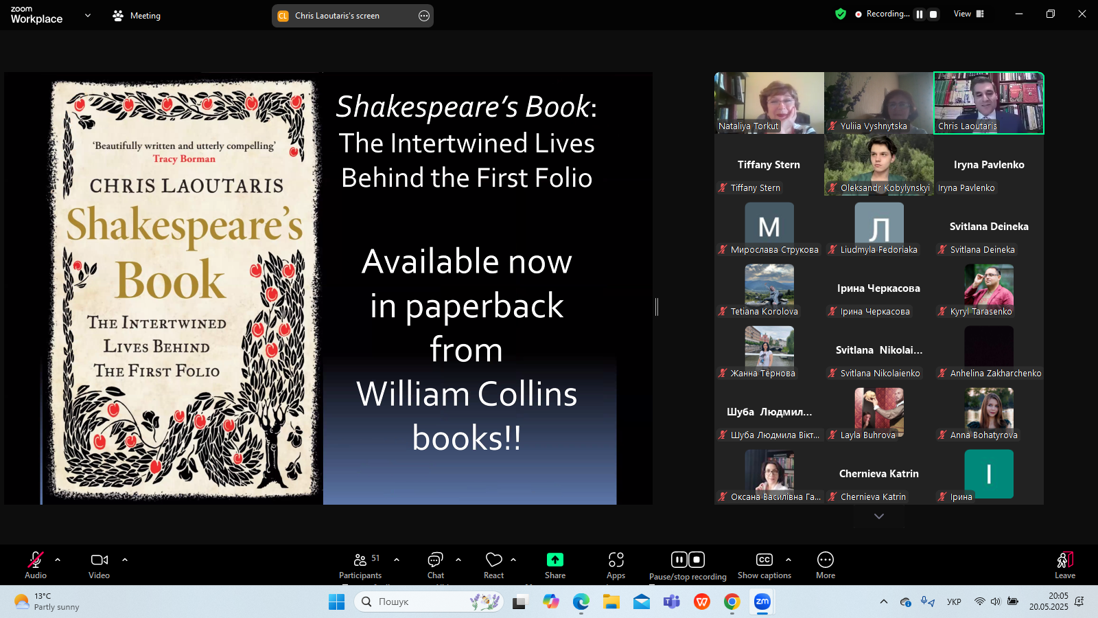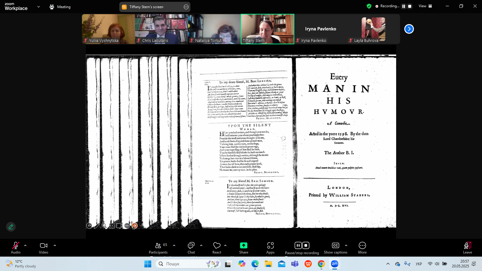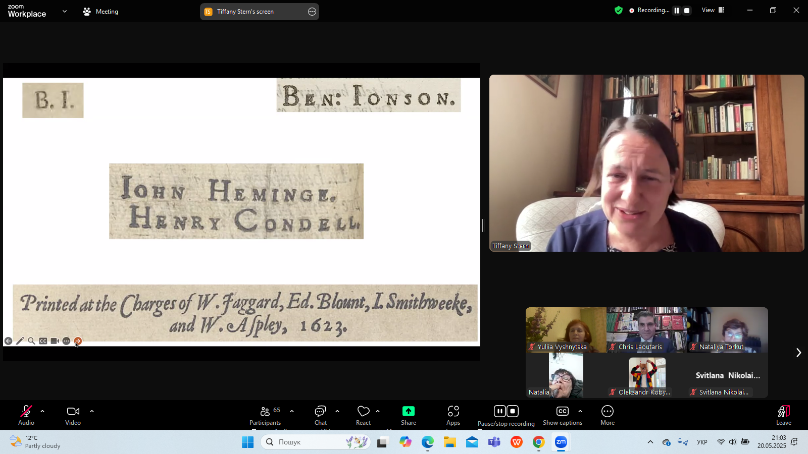 20 травня 2025 р. в межах Днів Шекспіра в Україні - 2025, які організовує Український шекспірівський центр на чолі з професором Наталією Торкут, відбулася публічна бінарна лекція фахівців із Шекспірівського інституту (Стретфорд-на- Ейвоні) "Sakespeare's First Folio: Facts, Riddles, Paradoxes"